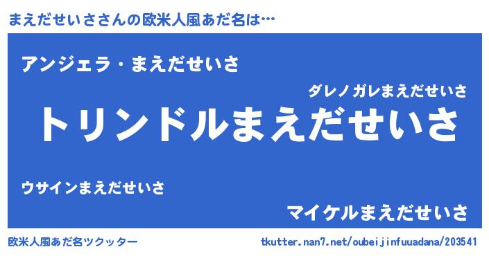 | 女子向けラノベタイトル風あだ名 | 『まえだせいさの玉の輿計画!』 |