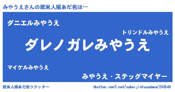 | 男性向けラノベタイトル風あだ名 | 『魔弾の王とみやうえ』『緋弾のミヤウエ』 |
