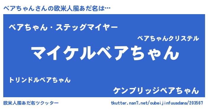 | 男性向けラノベタイトル風あだ名 | 『ベアチャンアートオンライン』 |