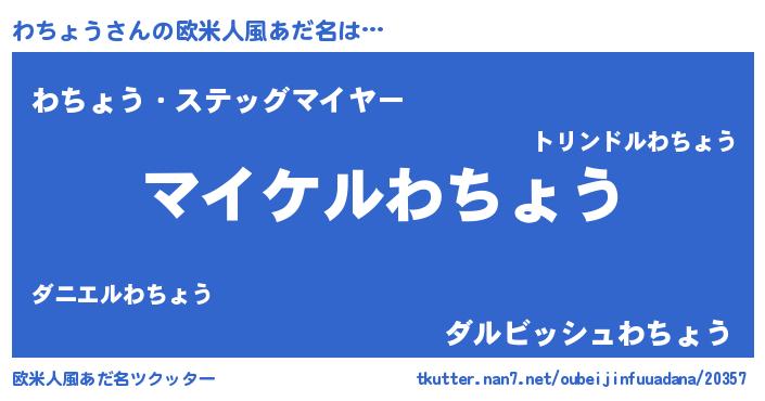 | 女子向けラノベタイトル風あだ名 | 『わちょう姫と円卓の騎士』 |