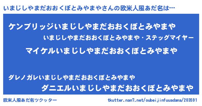 | 肩書あだ名 | 『いまじしやまだおおくぼとみやまや店長』 |