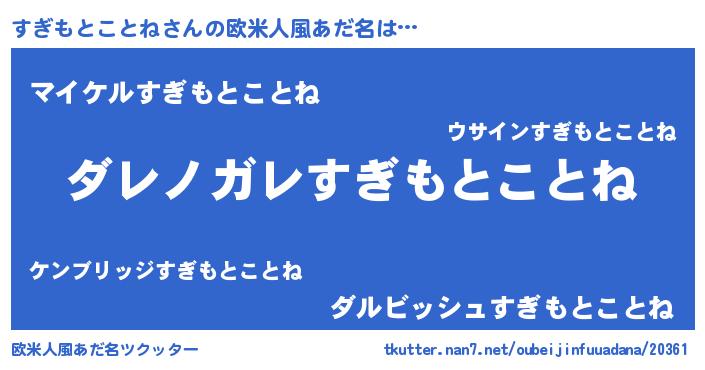 | 意味不明あだ名 | 『住所不定無職すぎもとことね(5歳)』 |