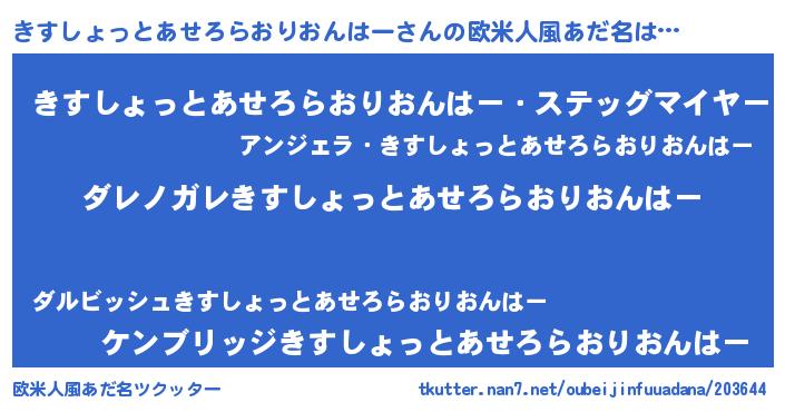 | ヘコむあだ名 | 『きすしょっとあせろらおりおんはー(震え声)』 |