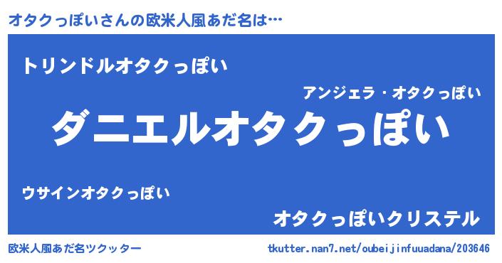 | 男性向けラノベタイトル風あだ名 | 『おまえをオタクにしてやるから、俺をオタクっぽいにしてくれ! 』 |