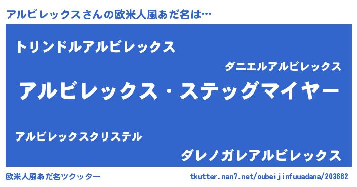 | ヒーロー風カッコイイあだ名 | 『仮面アルダー』『ネオアルビレックス』 |