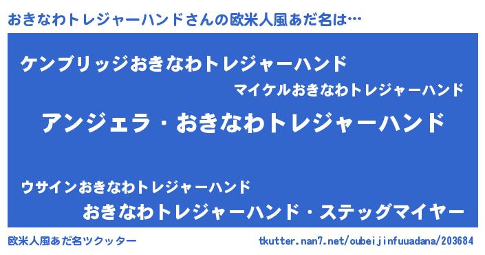 | 男性向けラノベタイトル風あだ名 | 『はたらくおきなわトレジャーハンドさま!』 |
