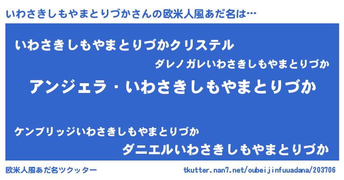 | 男性向けラノベタイトル風あだ名 | 『いわさきしもやまとりづかに滅ぼされるだけの簡単なお仕事です』 |