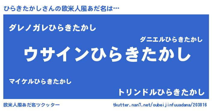| 男性向けラノベタイトル風あだ名 | 『ひらきたかしの嫁は女の子じゃないと思った?』 |