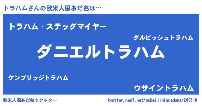 | ヘコむあだ名 | 『トラっちょ』『トラハム(震え声)』 |
