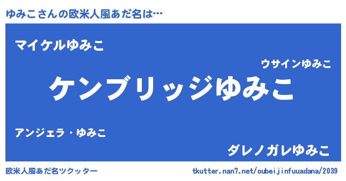 | 男性向けラノベタイトル風あだ名 | 『Re:ゆみこから始める異世界生活』 |