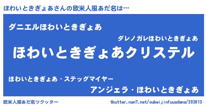 | 意味不明あだ名 | 『ほわいときぎょあフォーエバー』 |
