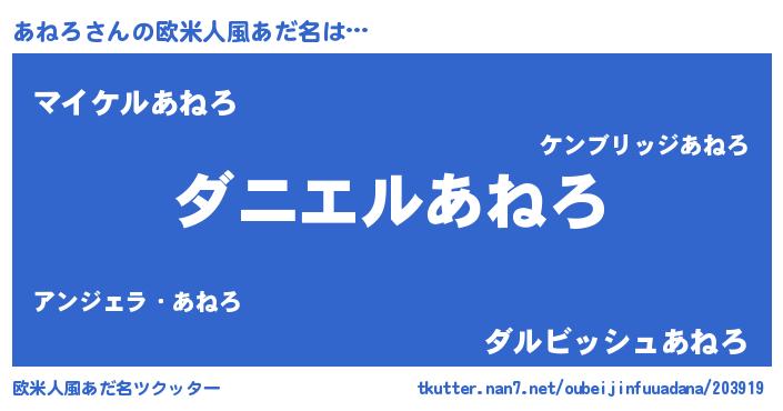| ヒーロー風カッコイイあだ名 | 『天空の使者あねろ』『スーパーアネロ』 |