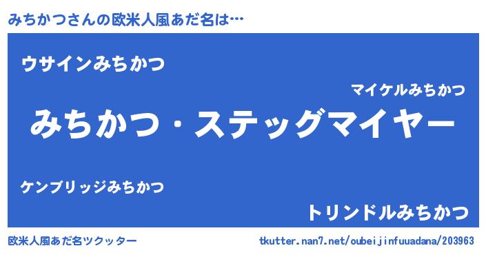 | 男性向けラノベタイトル風あだ名 | 『うちのみちかつが世界を掌握している!』 |