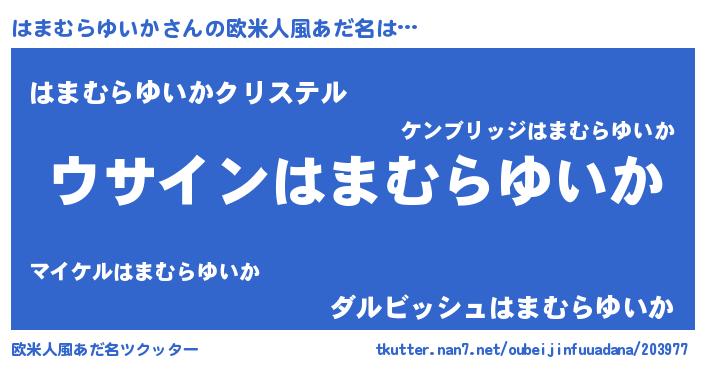 | 女子向けラノベタイトル風あだ名 | 『はまむらゆいかは平凡を望む』 |