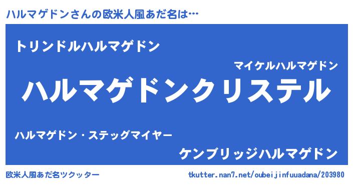| 意味不明あだ名 | 『ハルマゲドンフォーエバー』 |