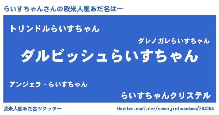 | 伝説のあだ名 | 『古文書に記された暗殺者らいすちゃん』 |