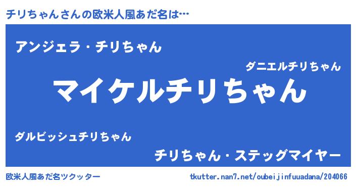 | 男性向けラノベタイトル風あだ名 | 『チリちゃんの憂鬱』 |