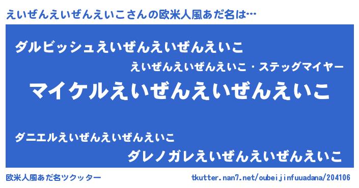 | 女子向けラノベタイトル風あだ名 | 『えいぜんえいぜんえいこ姫と円卓の騎士』 |