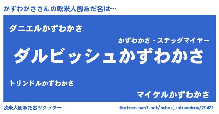 | 男性向けラノベタイトル風あだ名 | 『かずわかさという概念が存在しない退屈な世界 』 |