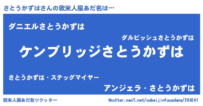 | 恥ずかしいあだ名 | 『サトウカズハデラックス』『さとちん』 |