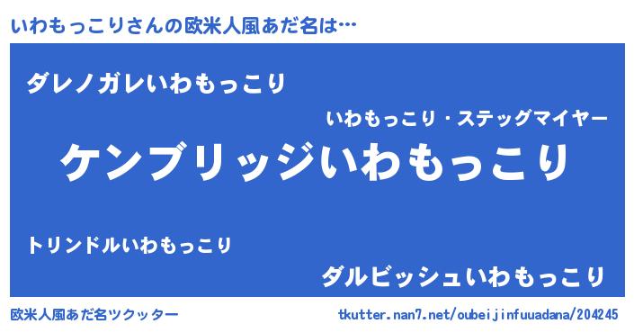 | 男性向けラノベタイトル風あだ名 | 『Re:いわもっこりから始める異世界生活』 |