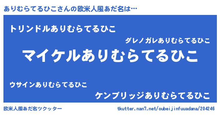 | 男性向けラノベタイトル風あだ名 | 『アリムラテルヒコアートオンライン』 |