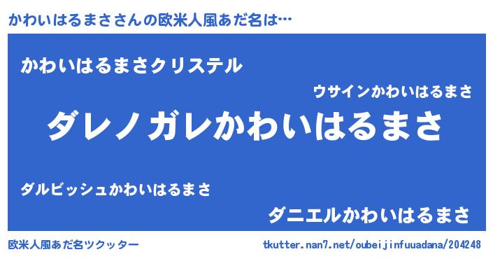 | 料理風あだ名 | 『かわいはるまさのカルパッチョ風』 |