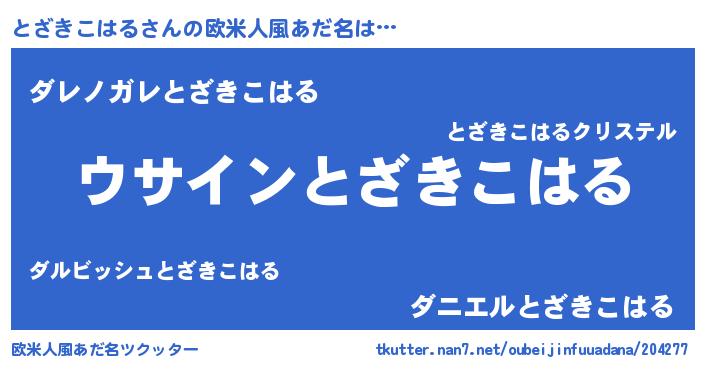 | 男性向けラノベタイトル風あだ名 | 『とざきこはるの嫁は女の子じゃないと思った?』 |