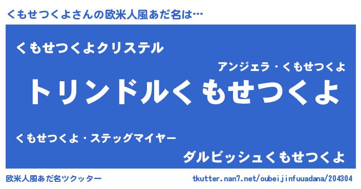 | 男性向けラノベタイトル風あだ名 | 『転生したらくもせつくよだった件』 |