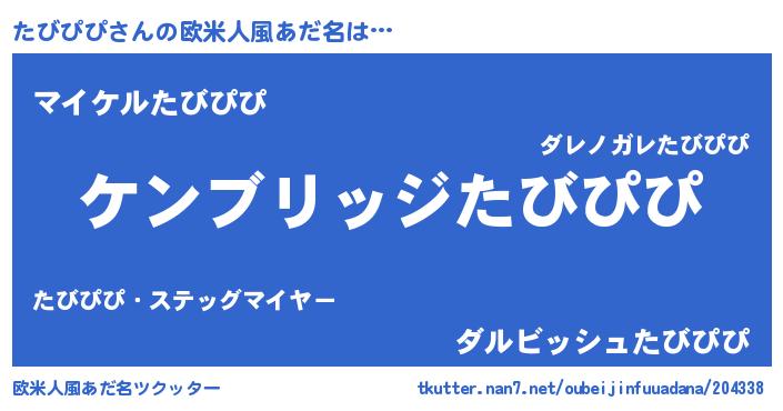 | 男性向けラノベタイトル風あだ名 | 『魔法科高校のたびぴぴ』 |