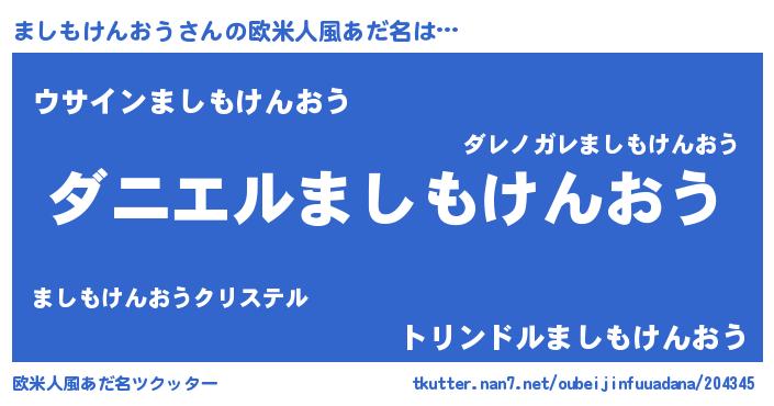 | 男性向けラノベタイトル風あだ名 | 『おまえをオタクにしてやるから、俺をましもけんおうにしてくれ! 』 |