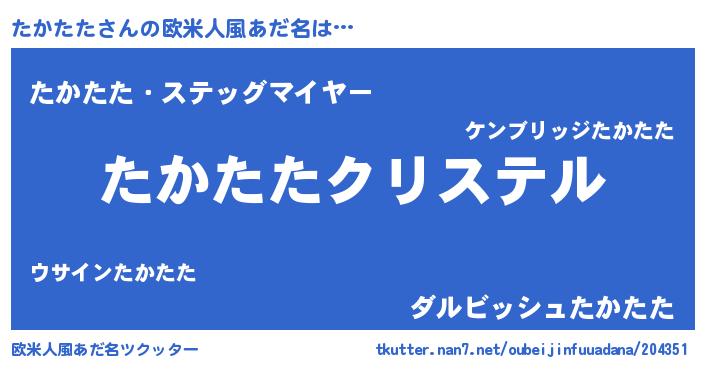 | 意味不明あだ名 | 『たかたたフォーエバー』『自称たかたた』 |