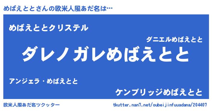 | ポケモン風あだ名 | 『メーバイ』『メバエダネ』 |