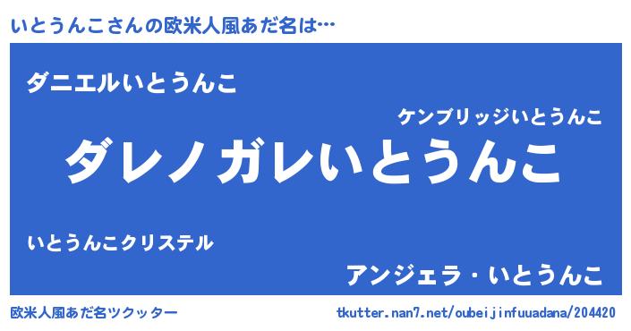 | 意味不明あだ名 | 『住所不定無職いとうんこ(91歳)』 |