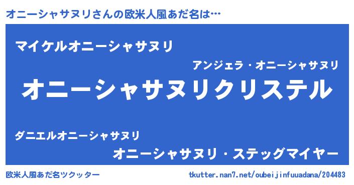 | 男性向けラノベタイトル風あだ名 | 『やはりオニーシャサヌリの青春ラブコメはまちがっている 』 |