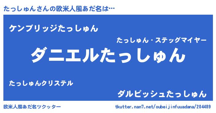 | 男性向けラノベタイトル風あだ名 | 『おまえをオタクにしてやるから、俺をたっしゅんにしてくれ! 』 |