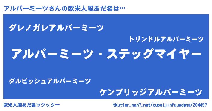 | 意味不明あだ名 | 『住所不定無職アルバーミーツ(9歳)』 |