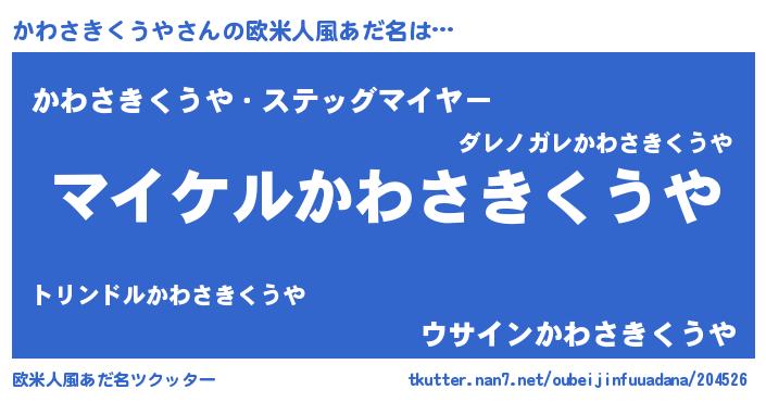 | 男性向けラノベタイトル風あだ名 | 『カワサキクウヤアートオンライン』 |