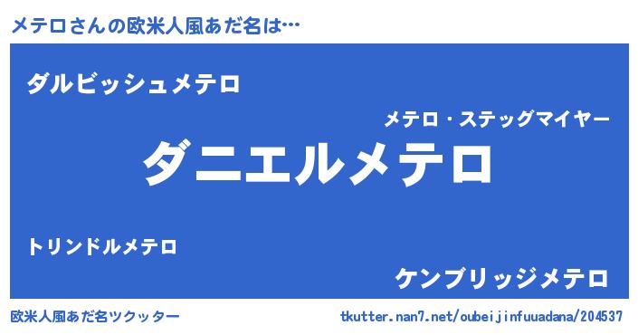 | ヘコむあだ名 | 『メテロ(笑)』『酢こんぶ』『メテお』 |