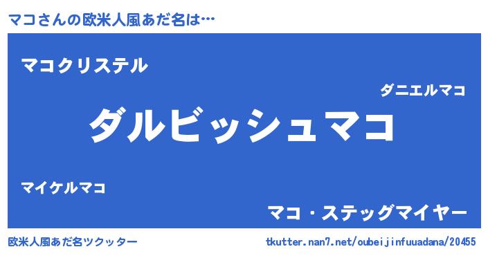 | 女子向けラノベタイトル風あだ名 | 『異世界で失敗しない100のマコ』 |