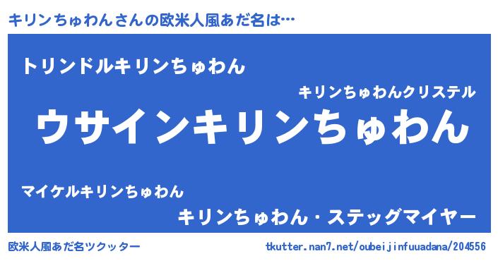 | 女子向けラノベタイトル風あだ名 | 『キリンちゅわんは平凡を望む』 |
