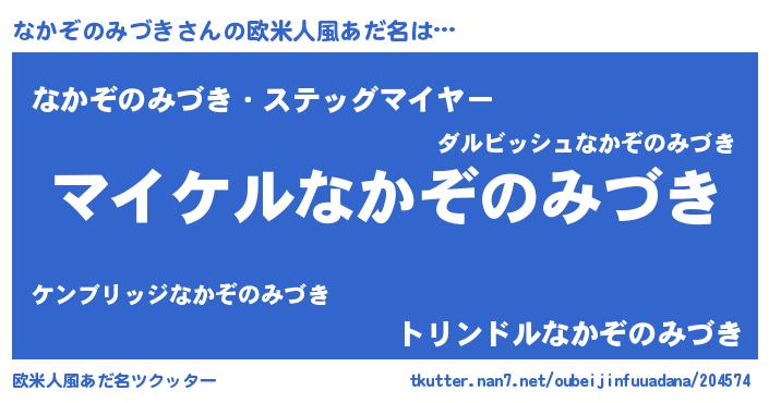 | 男性向けラノベタイトル風あだ名 | 『ナカゾノミヅキアートオンライン』 |