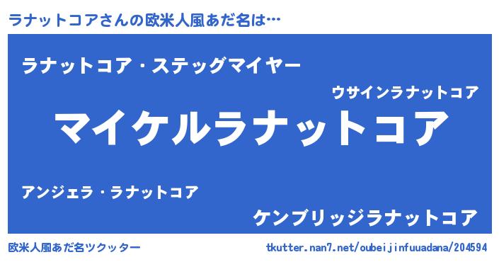 | 男性向けラノベタイトル風あだ名 | 『ラナットコアの憂鬱』 |