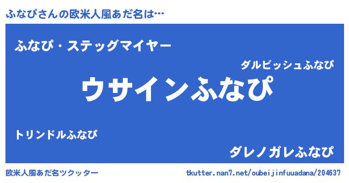 | 男性向けラノベタイトル風あだ名 | 『ふなぴの嫁は女の子じゃないと思った?』 |
