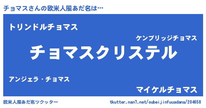 | 意味不明あだ名 | 『チョマスフォーエバー』『自称チョマス』 |
