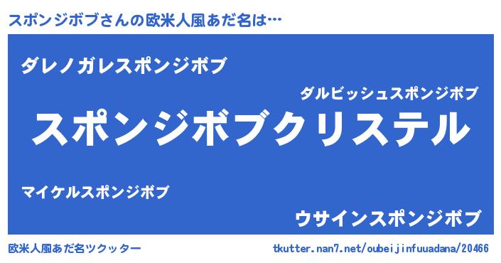 | 女子向けラノベタイトル風あだ名 | 『スポンジボブ伯爵の花嫁』 |