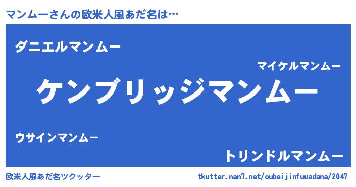 | 意味不明あだ名 | 『自称マンムー』『なめこ科マンムー属』 |