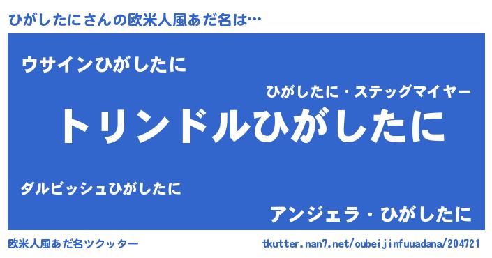 男性向けラノベタイトル風あだ名 | 『ひがしたに~年齢イコール彼女いない歴の魔法使い~』 |