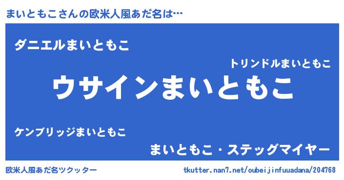 | 男性向けラノベタイトル風あだ名 | 『まいともこの嫁は女の子じゃないと思った?』 |