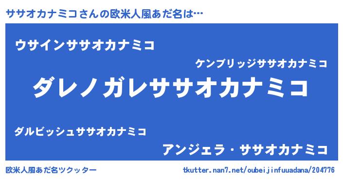 | ヘコむあだ名 | 『ササっ子』『ササオカナミコ(笑)』 |